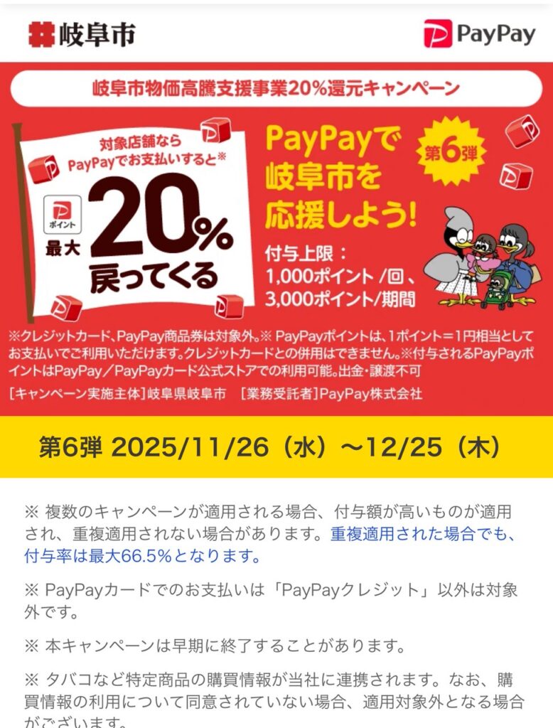 岐阜市PayPayも始まってますのでご利用下さいませ